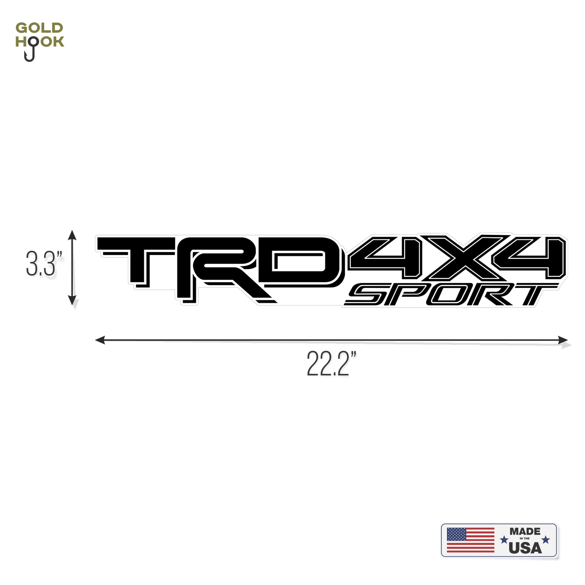 - Two Toyota TRD 4x4 Sport Black decals. Dimensions: 22.4 in. x 3.6 in.