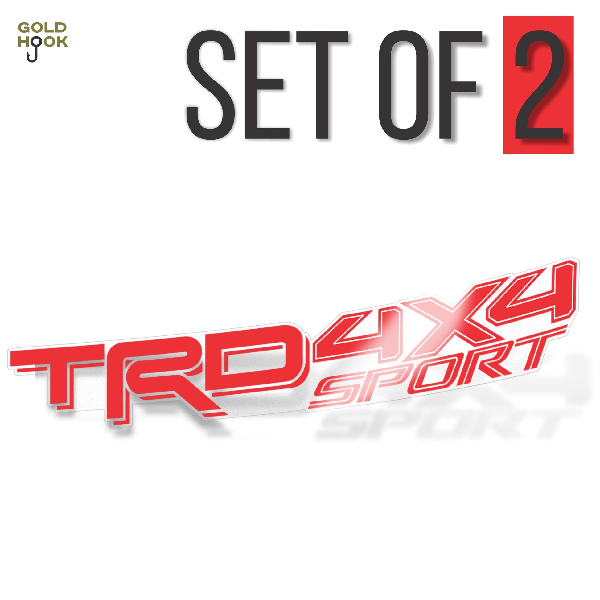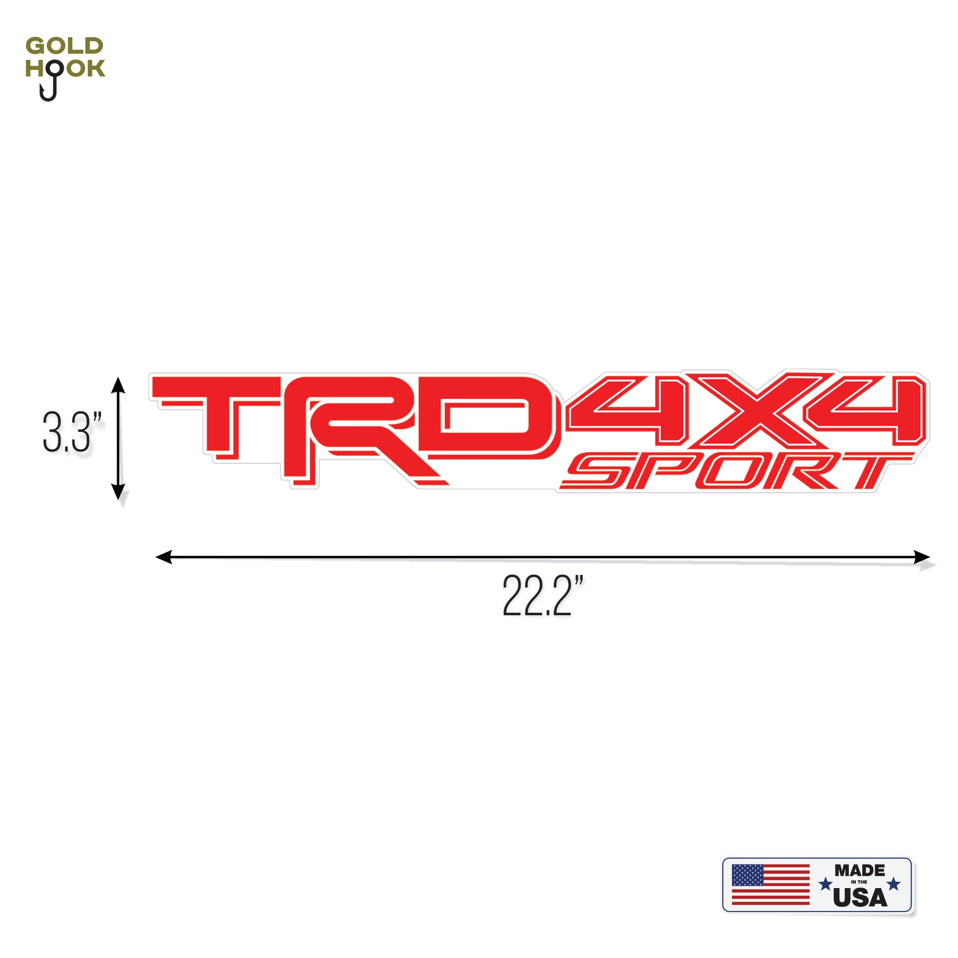 - Two Toyota TRD 4x4 Sport Red decals. Dimensions: 22.4 in. x 3.6 in.