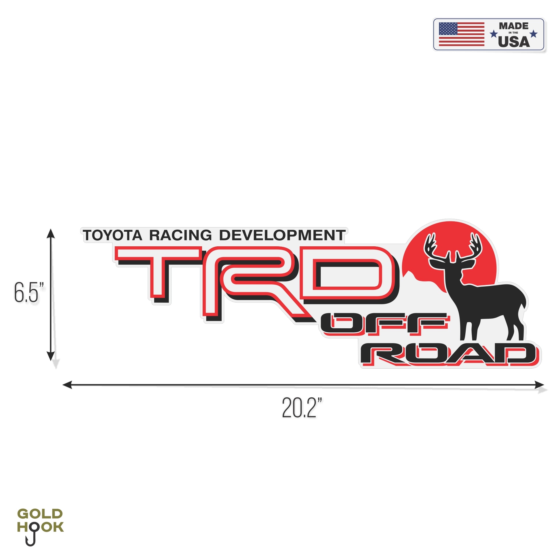 - Two Toyota TRD Off Road decals. Dimensions: 6.5 in. x 20.2 in.
