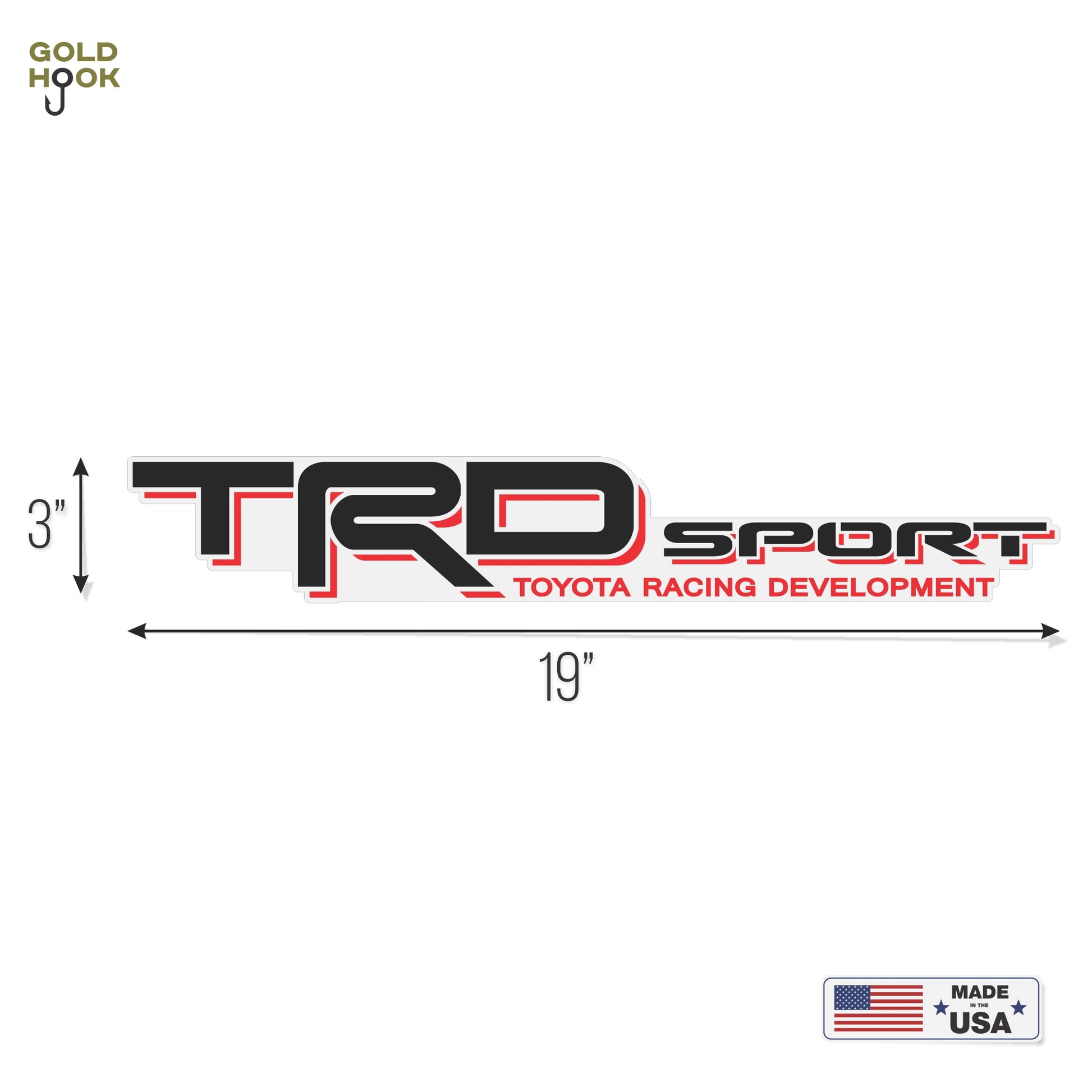 - Two Toyota TRD Sport decals. Dimensions: 3 in. x 19 in.