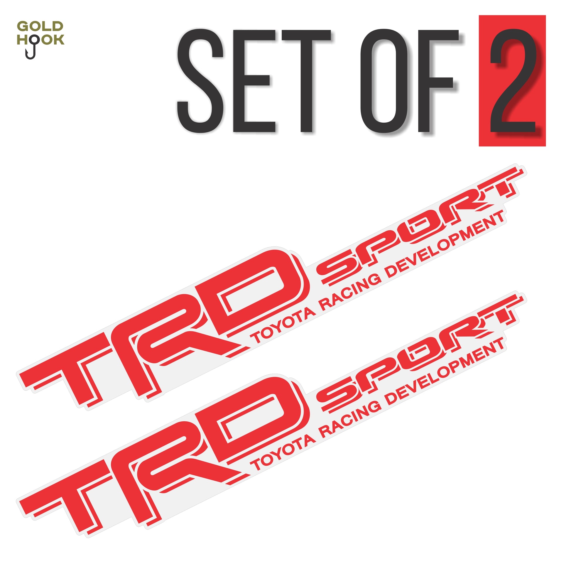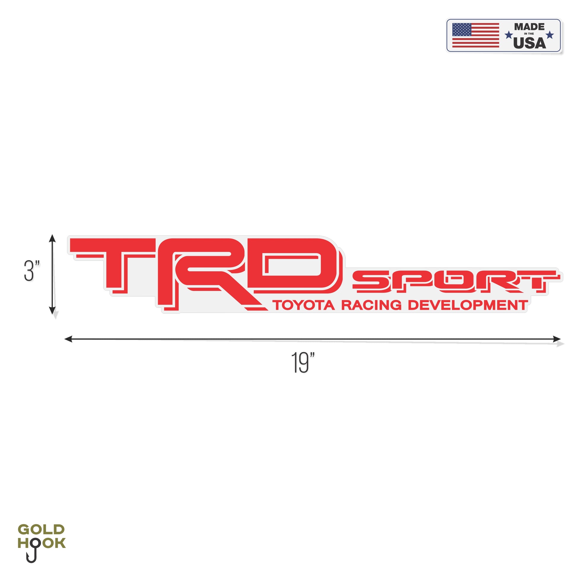 - Two Toyota TRD Sport decals. Dimensions: 3 in. x 19 in.